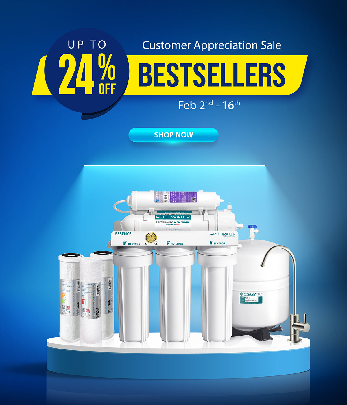 As the leading manufacturer of reverse osmosis water filtration systems with over 25 years experience, APEC Water is proud of our supreme product quality and outstanding customer support. Every APEC customer is a member of APEC family. APEC always pursues a complete customer satisfaction. Life is lovely when everyone loves it. Let us purify water, and you let the love flow.